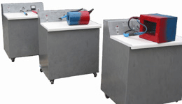 | The Model MC-8000 Series Magnetizer is a high energy, capacitive discharge magnetizer capable of saturating Alnico, Ceramic and Rare Earth magnetic materials. A solid state electronic control circuit coupled with rugged, heavy duty discharge SCR's or ignitions and fixtures, make this magnetizer a highly reliable, low maintenance unit. The electronic voltage control circuit prevents discharging the Model MC-8000 before the preset energy level has been reached, avoiding incomplete magnet saturation. An easy to read front panel meter monitors the capacitor voltage at all times. | |||||
